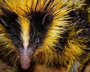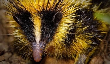 低地条纹鼩,马达加斯加动物,眼小腿短能游泳。低地条纹马岛猬不是刺猬,它是马岛猬科,和刺猬一样可以运用皮肤下的肌肉竖起尖刺,作为武器。另外它还具备豪猪的特技,刺的尖端容易折断,留下暗器在敌人身上。