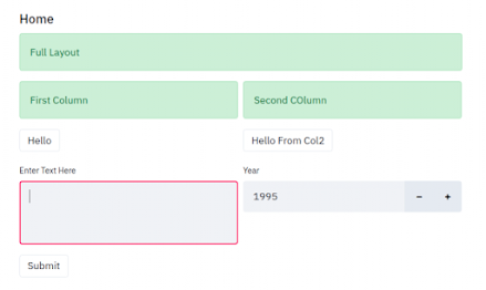 col2.success("Second COlumn") col2.button("Hello From Col2")